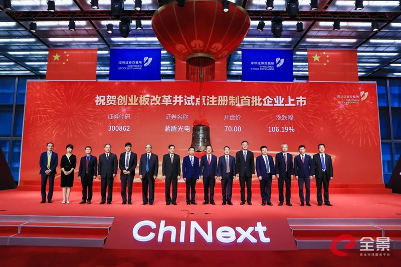 2020年8月24日,華龍證券保薦與主承銷的安徽藍盾光電子股份有限公司(股票代碼:300862,股票簡稱:藍盾光電)在深圳證券交易所創業板成功掛牌上市,成為注冊制下創業板首批18家掛牌企業之一。中共中央政治局委員、國務院副總理劉鶴發表書面致辭,中共中央政治局委員、廣東省委書記李希,中國證監會主席易會滿出席上市儀式并致辭,廣東省省長馬興瑞,深圳市委書記王偉中出席上市儀式。全國人大財經委、全國人大常委會法工委、最高人民法院、國家發改委、科技部、工信部、商務部、國資委等單位有關負責同志出席上市儀式。甘肅金控集團黨委書記、董事長,華龍證券黨委書記、董事長陳牧原作為藍盾光電保薦機構代表出席了掛牌儀式。藍盾光電子前身是成立于2001年的銅陵藍盾光電子有限公司,于2005年整體變更設立為股份有限公司,是國內智能交通行業領先的產品供應商和系統集成商。公司主營高端分析測量儀器制造、軟件開發、系統集成及工程、運維服務、數據服務和軍工雷達部件,產品和服務主要應用于環境監測、交通管理、氣象觀測和軍工雷達等領域。客戶主要為全國環境監測、公安、交通、氣象等政府部門、企業及科研單位和部隊等。公司在光學、電子及信息技術、精密機械制造等領域積累了五十余年的科研和生產經驗,是我國儀器儀表行業內具有較強自主創新能力的成長型創新創業企業。藍盾光電子本次IPO公開發行股票3,297萬股,發行價格為33.95元/股,募集資金總額約為11.19億元。本次募集資金投資項目聚焦于公司近年增長速度較快的環境監測領域。募投項目的實施,將進一步提升公司研發實力、提升公司生態環境監測全產業鏈綜合服務能力、加快公司承擔的國家重大科研專項的產業化進程,有利于公司搶抓環境監測公共服務供給模式改變而帶來的市場機遇,鞏固公司環境監測運維市場行業地位。華龍證券投行團隊依據多年深耕資本市場積累沉淀下來的豐富經驗,通過深入調研和專業高效的盡職調查工作,為藍盾光電子量身打造了上市方案。從首次申報到歷次反饋、再到順利過會,華龍證券與藍盾光電子建立了互信共贏的伙伴關系,并助力藍盾光電子駛入資本快車道,借助資本市場的優質資源配置能力進一步快速、健康、可持續發展,做大做強!華龍證券北京分公司(投資銀行)已在北京、上海、深圳、杭州、蘭州、安徽等地區設立了業務分部,項目遍及全國。投資銀行團隊業務經驗豐富、職業操守良好、工作規范嚴謹、進取精神強烈。經過二十年的磨礪,華龍證券投資銀行業務取得了長足的發展:專業隊伍不斷壯大,專業技術和專業經驗不斷積累,專業化的服務水平不斷提高,在很多細分領域和細分行業華龍現已走到市場前沿,證券研發、營銷、創新等綜合實力不斷提升,公司已經具備大型股票、債券發行項目運作的實力和經驗,并和一批國際性企業龍頭建立了長期的戰略合作關系。華龍證券將始終秉承客戶價值最大化這一發展宗旨,致力于為客戶提供專業化、精準化、多元化的服務。“以您為本,成人達己”,華龍證券愿與您攜手同行,共創偉業。
