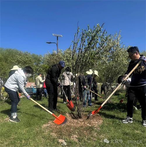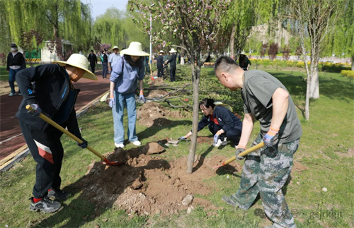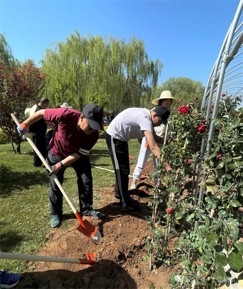 活動(dòng)當(dāng)日晴空萬里,在公園專業(yè)技術(shù)人員指導(dǎo)下,集團(tuán)領(lǐng)導(dǎo)率先垂范,與干部職工“并肩奮戰(zhàn)”,大家分工明確、協(xié)作有序,共同栽種海棠、榆葉梅、碧桃等觀賞樹木和牡丹、月季、繡球等花卉,為黃河之畔再添新綠。泥土芬芳中,鐵鍬與笑語和鳴成曲,青年團(tuán)員們自發(fā)組成“搬運(yùn)苗木小分隊(duì)”穿梭奔忙保障供給;部分女職工組成“殺菌沃土先鋒組”,精準(zhǔn)投放藥劑為土壤消毒;由青年黨員組成的“喬木攻堅(jiān)團(tuán)” 更是勇挑重?fù)?dān),主動(dòng)承擔(dān)種植冠幅大、重量重的海棠、碧桃等喬木的任務(wù),喊著口號(hào)扶正碗口粗的樹干,覆土?xí)r反復(fù)校準(zhǔn)樹干垂直度,各小組默契配合,現(xiàn)場一片熱火朝天。隨著“種植先鋒隊(duì)”完成最后一株月季栽種,歷時(shí)三小時(shí)的連續(xù)奮戰(zhàn),295株新苗在公園內(nèi)指定規(guī)劃區(qū)域內(nèi)安家落戶,形成“春觀海棠、夏賞繡球、丁香獨(dú)秀、月季連廊”豐富的景觀帶。