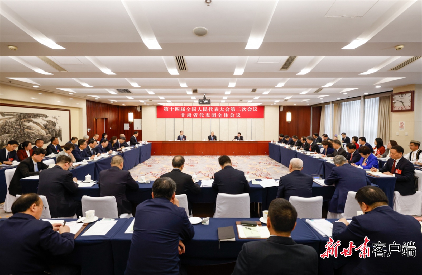 3月5日下午,十四屆全國人大二次會議甘肅代表團在駐地舉行全體會議,審議李強總理所作的政府工作報告。(記者孟捷)
