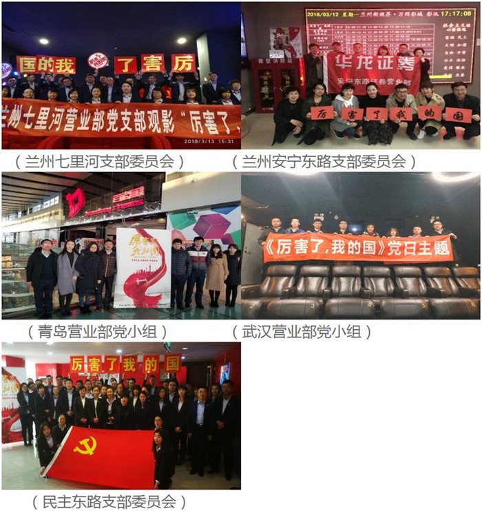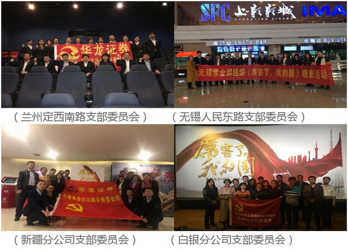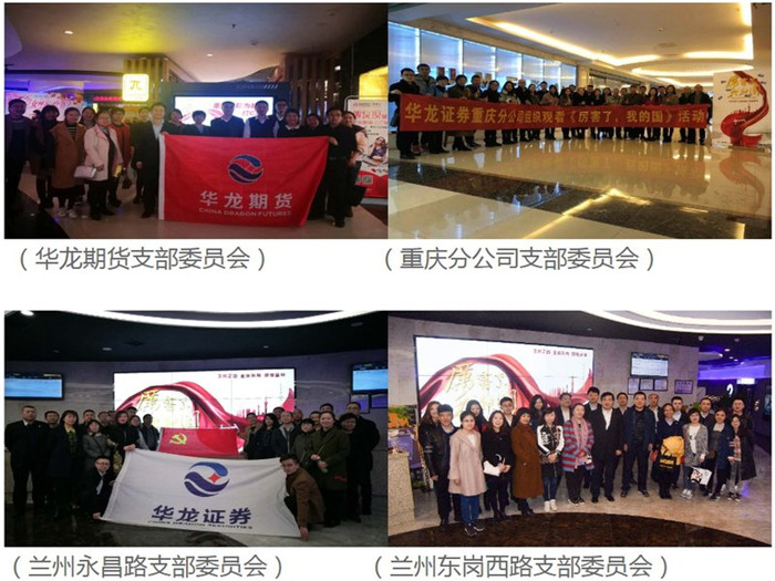 華龍證券股份有限公司黨委根據公司“兩學一做”學習教育制度和學習十九大精神系列活動計劃,認真安排部署,積極組織全體黨員、干部、員工開展《厲害了,我的國》主題黨日觀影活動,為每人購買2張影票,與家人朋友一同觀影。不僅豐富公司學習活動內容,提高精神素養(yǎng),感受新時代祖國翻天覆地變化,同時傳遞正能量,增強企業(yè)凝聚力,激發(fā)昂揚斗志,鼓舞全體人員朝氣蓬勃邁向未來。