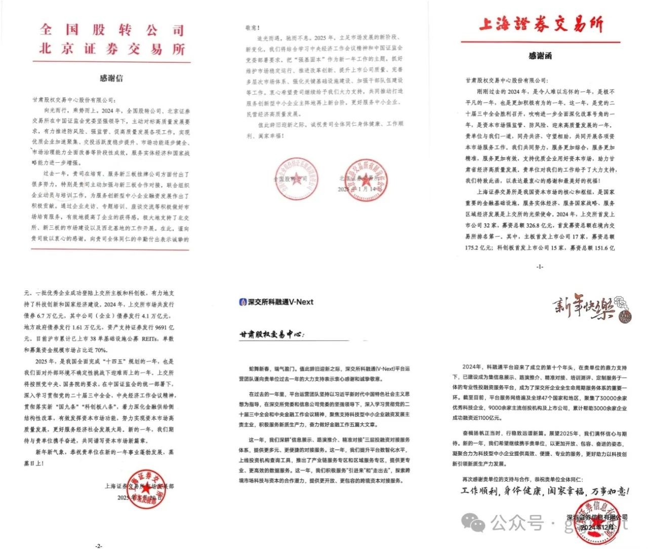 近日,甘肅股權(quán)交易中心收到北京證券交易所和全國股轉(zhuǎn)公司、上海證券交易所、深圳證券信息有限公司感謝信,對甘肅股權(quán)交易中心過去一年給予的支持表示感謝,同時希望未來進(jìn)一步加強(qiáng)合作交流,凝聚合力服務(wù)實(shí)體經(jīng)濟(jì)高質(zhì)量發(fā)展。